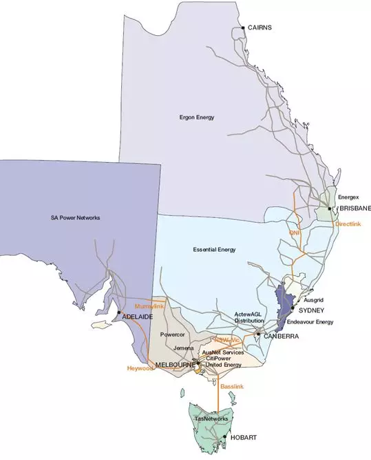 圖 2 澳大利亞配電區(qū)域